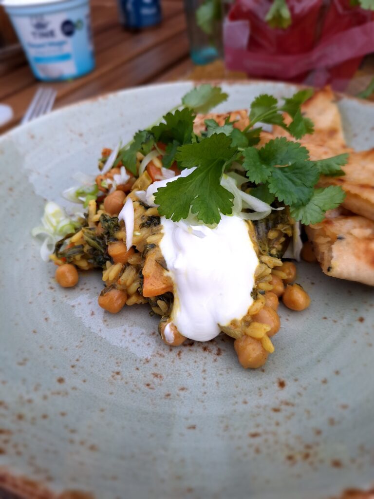Werk je gerecht af met wat yoghurt, koriander en gebakken naanbrood.