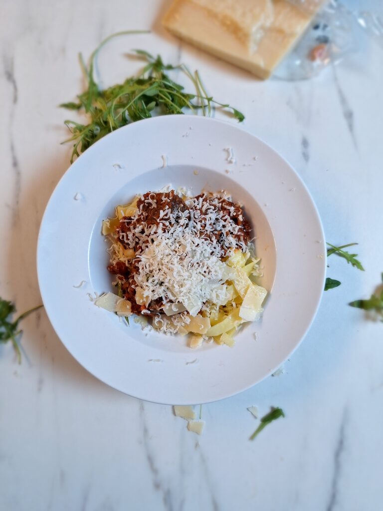 1. Schep de pasta in ondiepe kommen en leg er een royale schep ragù op. Garneer met fijngehakte peterselie en vers geraspte Parmezaanse kaas voor extra smaak!