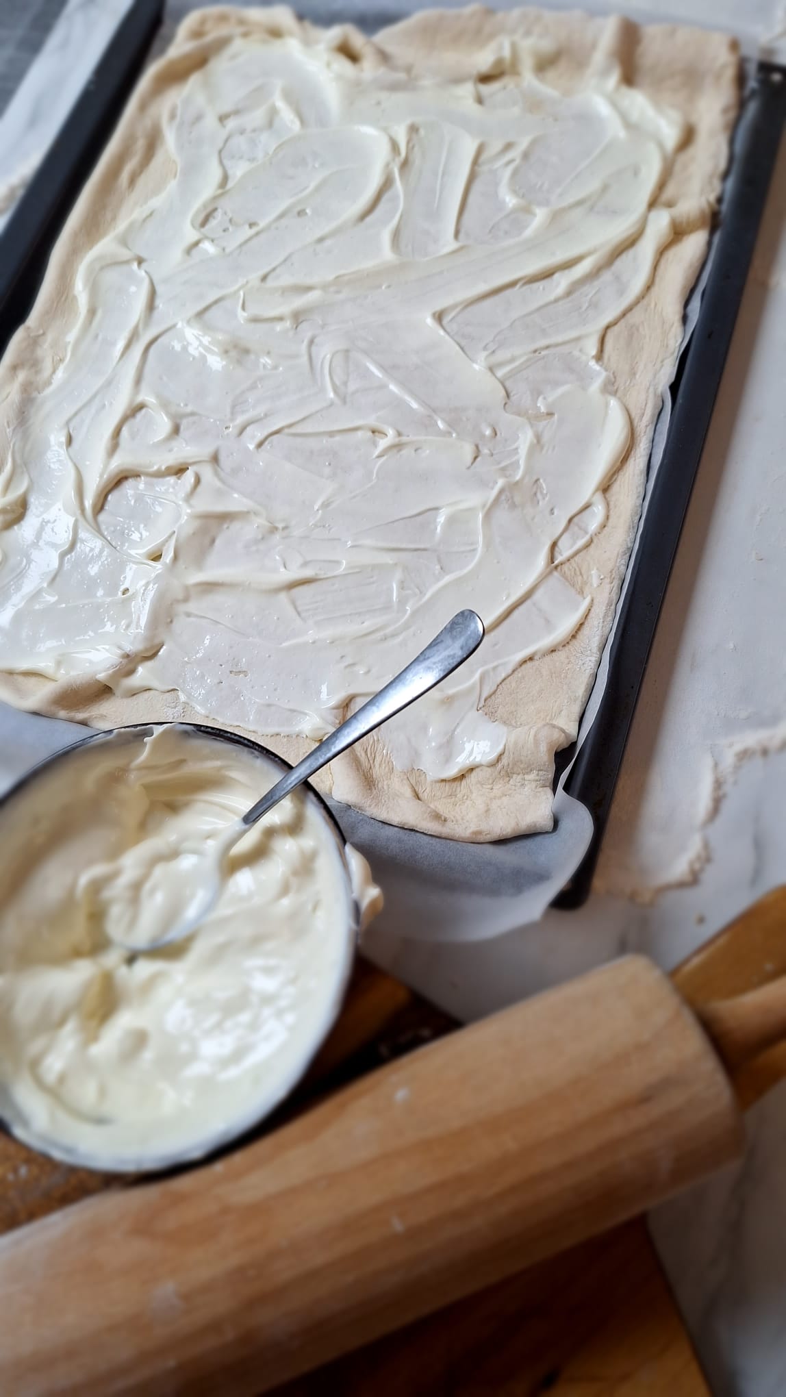 Voor je het deeg gaat beleggen, verhuis je het naar een bakplaat.