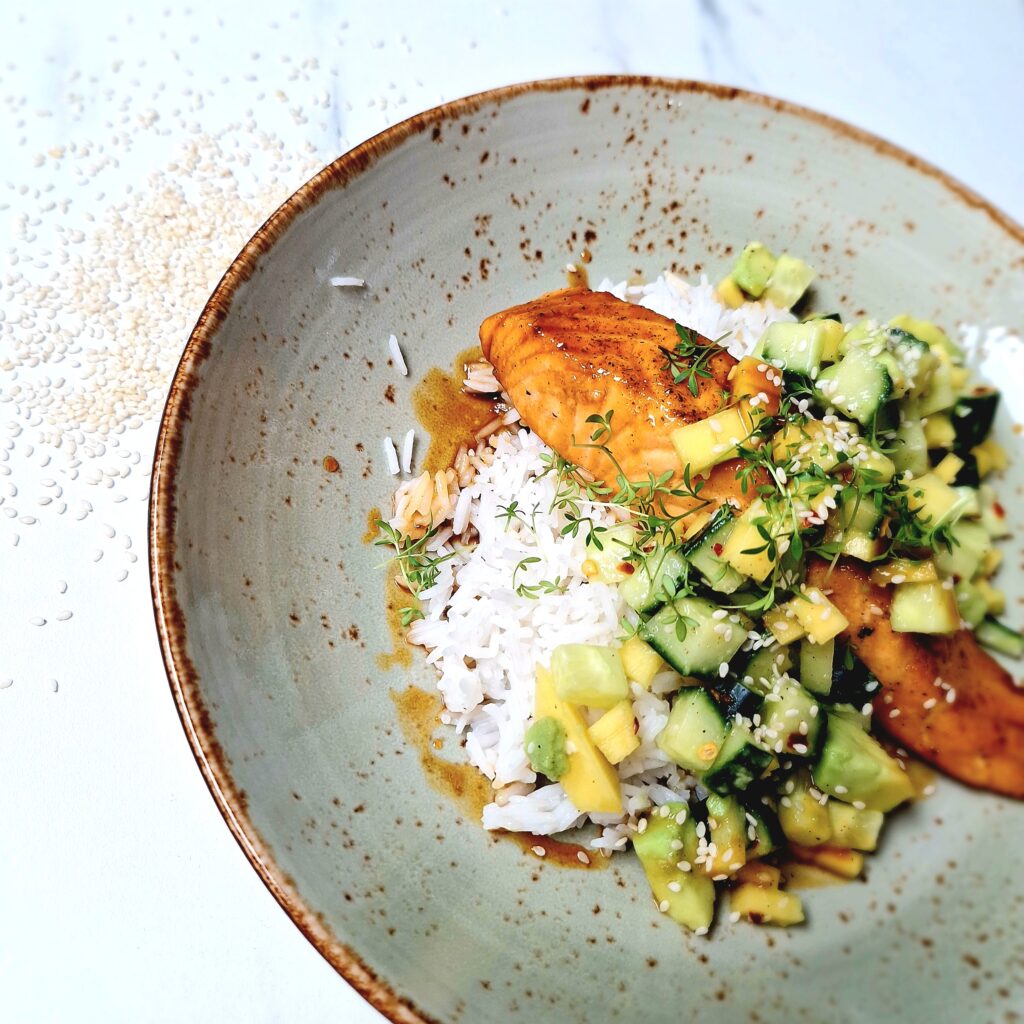 Hoe je een lekker stukje zalm nog lekkerder kan maken met de juiste marinade. Ik hou ervan om zout en zoet te combineren. Dit recept is daar een perfect voorbeeld van. De sinaasappel van de saus en de mango van de salade in combinatie met soja. A match made in heaven wat mij betreft.