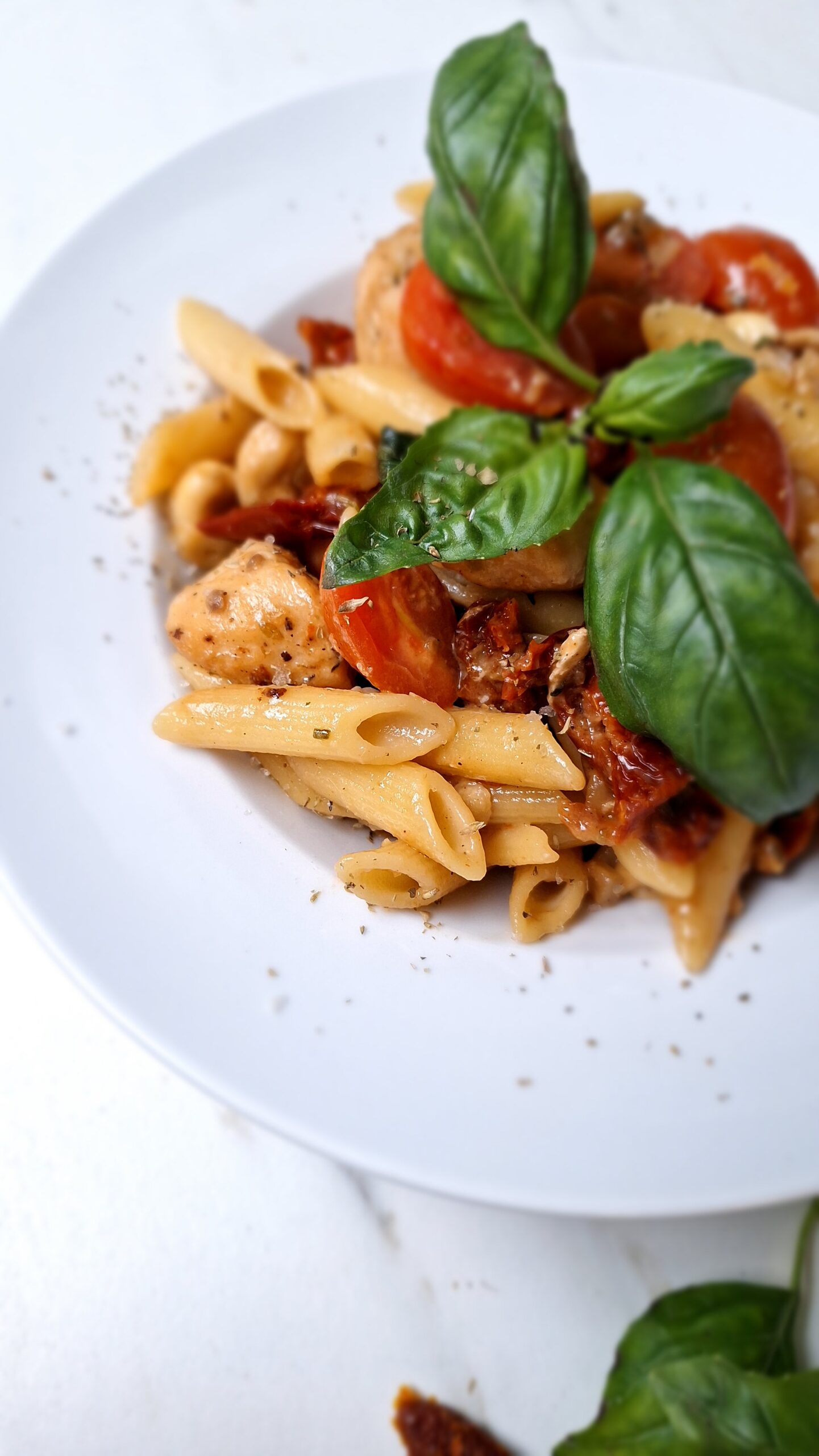 Snelle pasta kip met tomaten en cashews