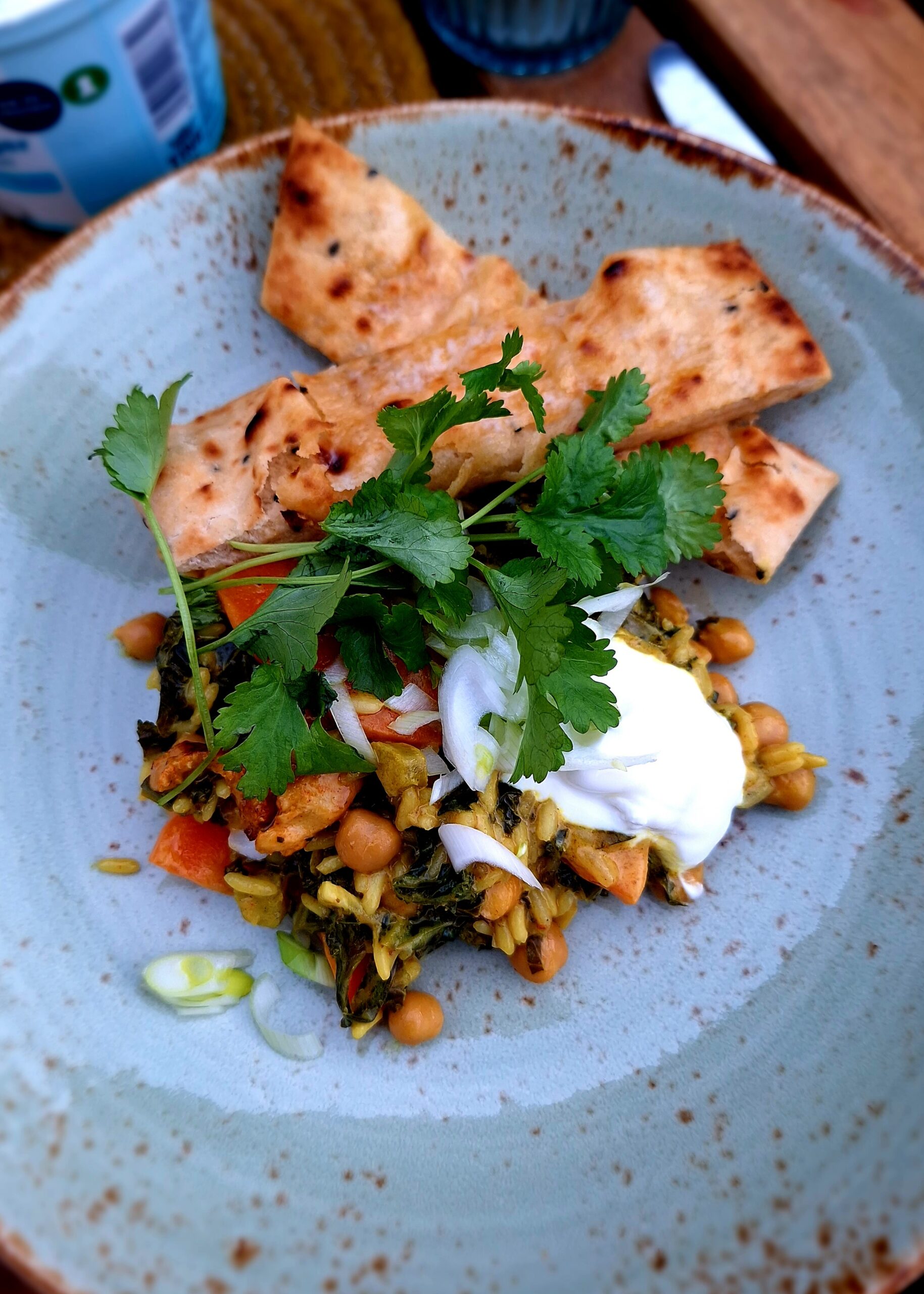 Curry van kikkererwten en groene kool